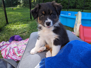 Dublin is a copy/paste of her dad, Potter! She has the same "I can go anywhere and do anything" temperament and is growing up to become an amazing companion and performance dog. We love that Dublin has a serious side to her when it comes to working. She is all business until her job is done whether herding, putting her sheep up in the evening, dock diving, or scent work! She also has a nice "off switch" when needed. Having this balance is a priority in our program and having it at a young age is awesome! In the pool she is the clean up girl! If any toy is left floating she, without being told, jumps in to retrieve it! She has just started Dock Diving, Scent Work and Herding!